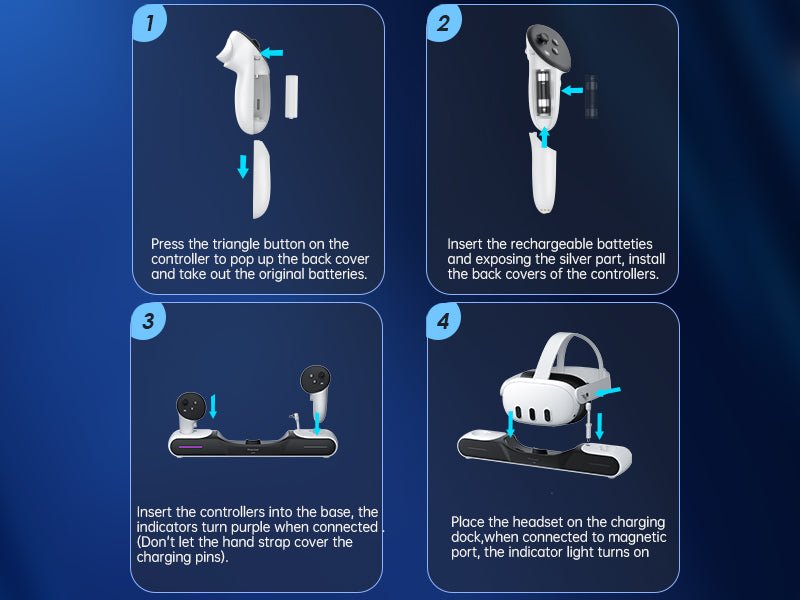 The dock is designed with a priority charging system. It first supplies power to the headset and controllers. After they are fully charged, the USB-C output port will become active. This ensures faster charging for your main devices.