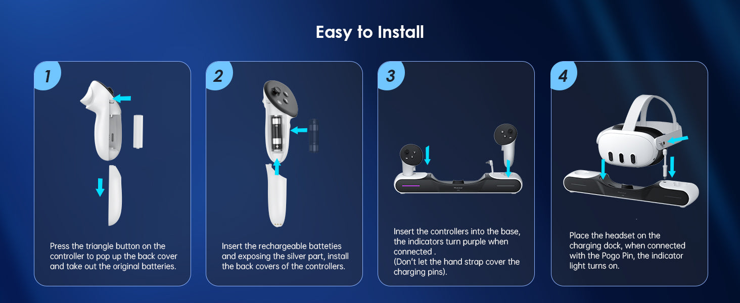 - Fácil de usar para niños : Simplemente colóquelo para mantener la carga magnética y gire la batería para asegurar que la lámina metálica coincida con el borde de la tapa. Ideal para niños. Compatible con la mayoría de las correas de cabeza de terceros o correas Elite con batería. Fácil de instalar: la base de carga para Quest 3 es fácil de instalar.