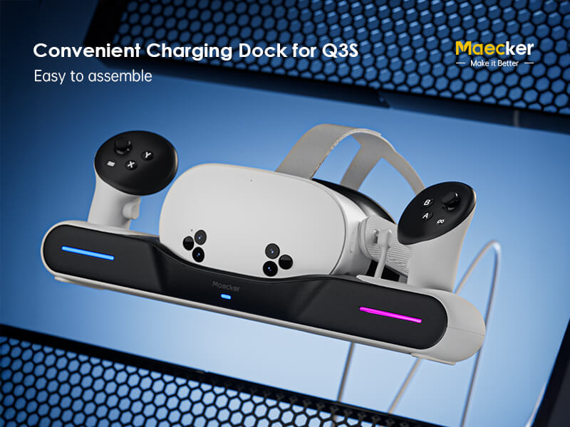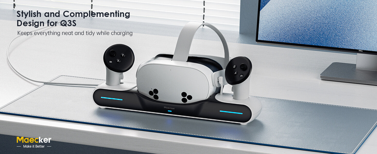 - Space Saver: A sleek and stylish charging dock designed for Meta Quest 3S/3 controller charger. Keep your setup organized and clutter-free with this Maecker dock station, perfect for charging for Oculus Quest 3S/3 accessories. Showcase your VR headset neatly with this practical and modern for Quest 3S/3 stand.