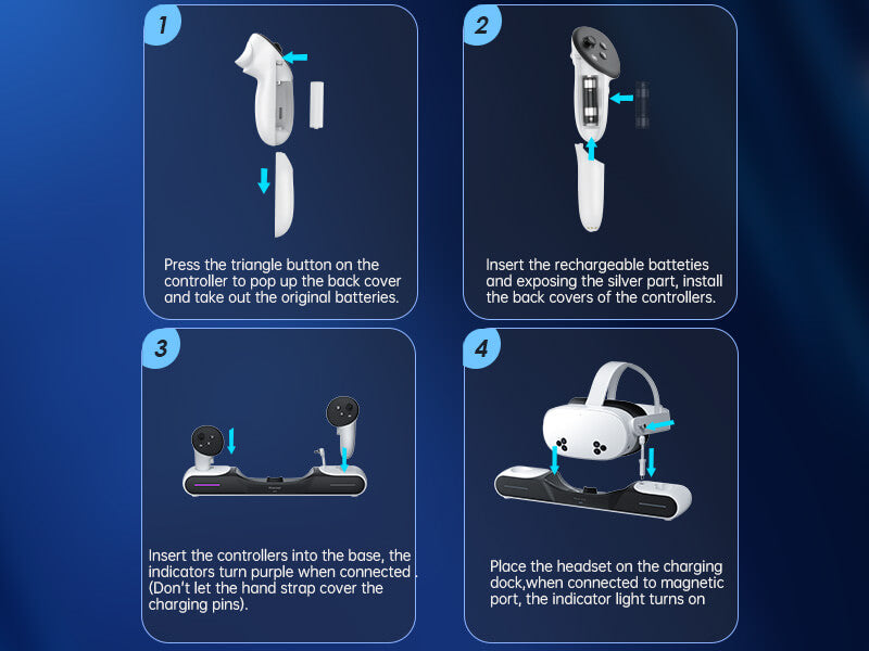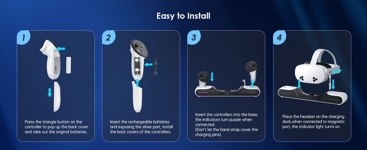 - Easy to use for kids: Just set down to stay powered up with magnetic charging, rotate the battery to ensure that the metal sheet coincides with the edge of the battery door. Fridendly use for kids. Compatible for most 3rd party head strap or elite strap with battery. Easy to install the charging dock for quest 3S/3 docking station.